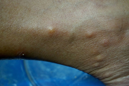 Most people will find bed bug bites to be small and very itchy. These bites are often mistaken for something else such as eczema. It can be hard to diagnose bed bug bites due to this, especially if someone inflames their skin further by scratching the area. There are some signs that point more strongly to bed bugs over other types of bugs. The number one thing to look out for is a line of bites going straight up your body: bed bugs commonly bite in this pattern as they bite you at the crease where your body meets the bed sheets. It’s very rare to find a single bite like you would with spiders or mosquitoes, and much more common to find clusters and lines. It’s also rare for bugs to bite your face. They most frequently bite your lower body, but anywhere can be bitten.